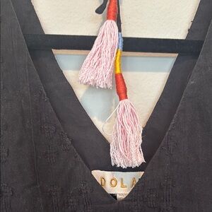 Elegant black cover up by Dolan. Sleeveless design with a V-neck. Features colorful trim at the hem.