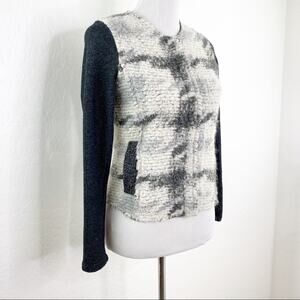 Dolan Houndstooth Tweed Sweater Jacket Black White Gray Zip Up Cardigan Small S