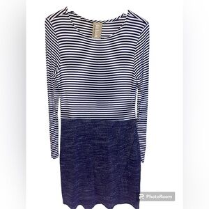 Dolan Left Coast Collection Anthropologie striped faux wrap dress blue medium