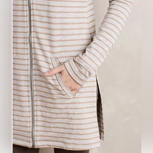 Dolan zip up french terry stripe jacket. Soft. Stretch. Great with jeans and a tee or over workout gear. Made in the USA. Machine washable. First four pictures are