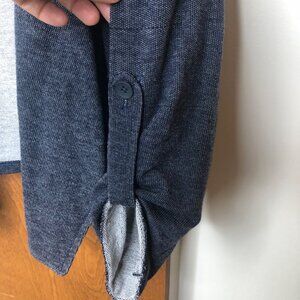 This Dolan Left Coast Collection cardigan is an embodiment of casual elegance. With its open front design and the sophisticated allure of charcoal gray, it wraps the wearer in a soft embrace. The roll-up sleeves and button closures add a touch of practicality and style, making it a fashionable companion for leisurely pursuits.
