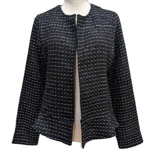 Dolan Left Coast Collection Womens Tweed peplum blazer Open Front- Navy Sz M NWT