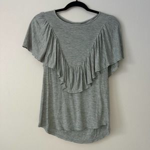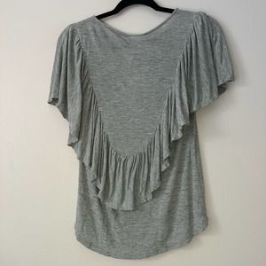 Dolan Left Coast Collection XS Gray Ruffle Short Sleeve Knit Top