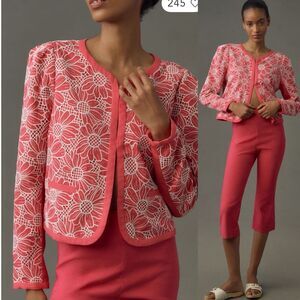 Dolan Left Coast Linen Floral Cutwork Jacket in Pink | Anthropologie | Size Large