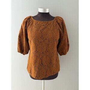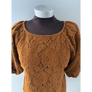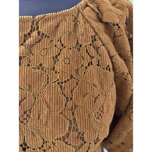 Dolan Left Coast Norah Medium Caramel Corduroy Puff Sleeve Lace Floral Boho