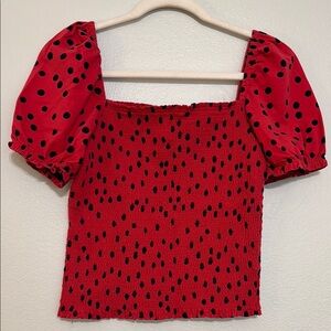 Anthropologie Dolan Left Coast Smocked Puff Sleeve Polka Dot Top
