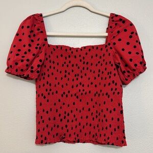 Dolan Left Coast Smocked Puff Sleeve Polka Dot Top