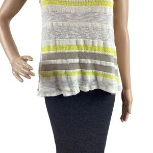olan Left Coast striped top, sleeveless knit cowl neck blouse, lightweight summer layering piece, neutral color casual top, citron striped tank, relaxed weekend outfit, soft knit transitional top, Anthropologie style blouse, summer casual workwear, easy vacation top