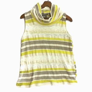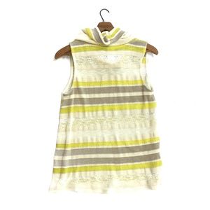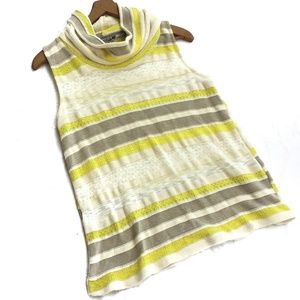 Features:Anthropologie Brand-Dolan Left Coast Collection Cowl Neck Sleeveless Knit Top. Sweater Knit. Features Yellow and Tan Stripes. Semi Sheer. Excellent Used Condition!