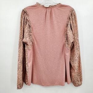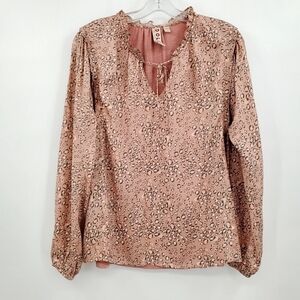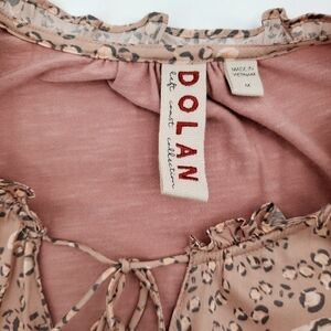 Dolan Nude Pink Ruffle Tie Neck Leopard Print Blouse, Size M.