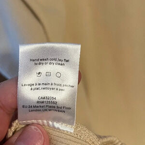 Dolan Puff Sleeve Pearl Embellished Blouse Shirt Tan Crewneck 3X Ribbed