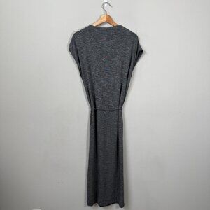 Dolan Tie Waist Knit Midi Dress Women's Small Gray Minimalist Lagenlook Classic