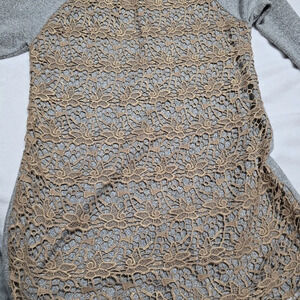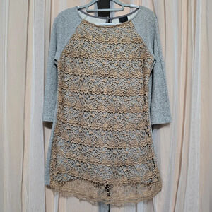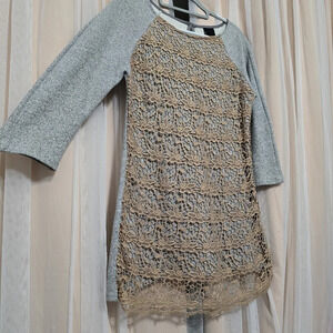 Dolan for Anthropologie Le Pompe Tunic Sweatshirt w/Crochet Overlay, EUC!