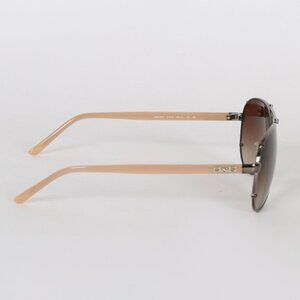This is a gorgeous pair of Dolce & Gabbana aviator style sunglasses in a medium brown ombre lens, gun metal frames and light peach plastic arms. They are in fantastic condition, no scratches, very little wear.