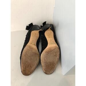 Beautiful satin/silk slip on, open toe shoes. Gold foil insoles, leather sole. A few beads are missing other wise see picture. Size 38.5