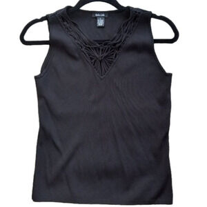 Pre-owned Dolce Carbo Sleeveless Black top with Sexy Detail at V Neck Line.