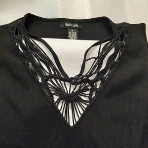 Dolce Cabo Black Knit V neck Top with SexyTwisted Cord Detail
