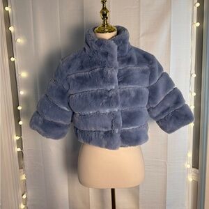Dolce Cabo Blue Puffer Jacket with Plush Cropped Design