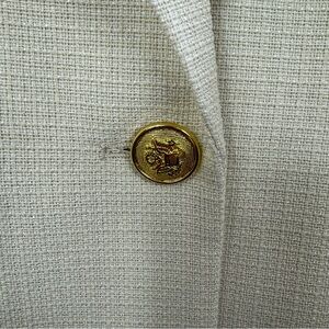 Elegant cream blazer by Dolce Cabo. Features a single gold button closure. Perfect for formal occasions.