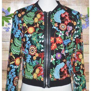 Dolce Cabo FRIDA Floral Embroidered Bomber Jacket Size S Full Zip Boho Colorful