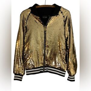 Dolce Cabo Gold Sequin Bomber Jacket Size XS
