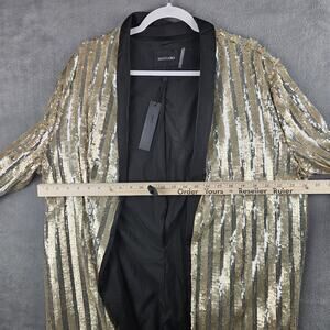 Dolce Cabo Gold Stripe Sequin Open Front Jacket Glam NYE Holiday Party Blazer