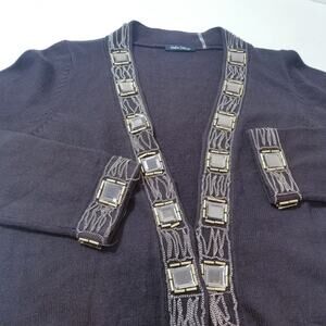 Dolce Cabo Knit Wool Cashmere Blend Chains Jeweled Cardigan