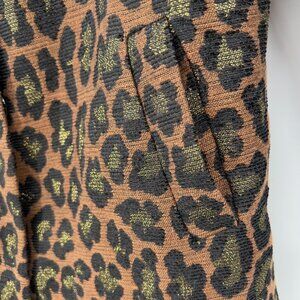Details: Leopard print with metallic gold accents, collarless, long sleeves Fully lined