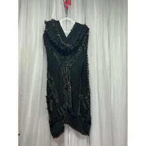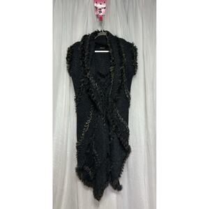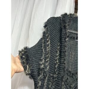 Dolce Cabo Real Rabbit Fur Long Duster Cardigan Pockets Knit Sweater Size Medium