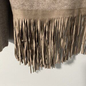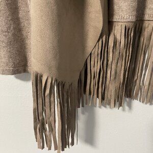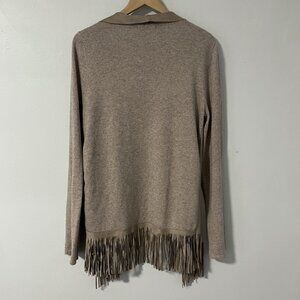 Dolce Cabo Tan Angora Microsuede Fringe Classic Waterfall Cardigan Sweater M NWT