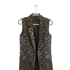 Dolce Cabo Women's XSmall Brown Leopard Print Long Line Fleece Sleeveless Vest