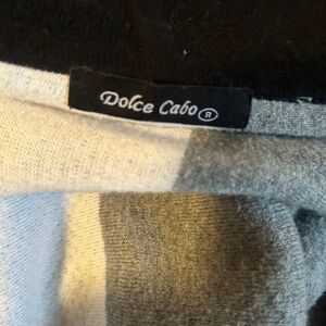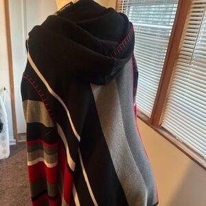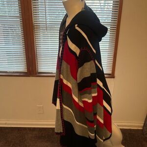 Dolce Cabo Red/Black/White/Gray stripes Handkerchief Edge Stitching hoodie open cardigan, Size M/L (55% Viscose, 45% Cotton) ***size label missing***