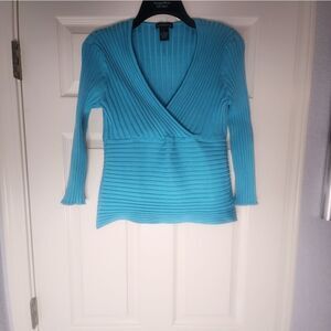 Dolce& Fabuloso L Blue SILK Blend Knit Wrap 3/4 Sleeve Women’s Top
