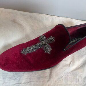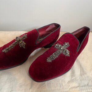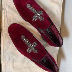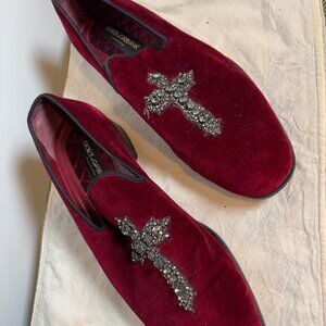 Dolce & Gabanna Burgundy Velvet and Rhinestone Cross Loafer Men's 10
