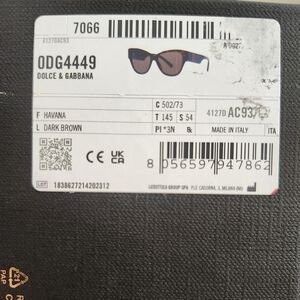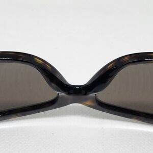 Tortoise shell frame with DG logo hit on each arm. New condition, includes box, soft and hard cover case, and care booklet.