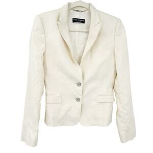 Dolce & Gabanna Womens Academia Career Preppy Italy Linen Blend Blazer Jacket in Cream. Size IT 42 US 6.