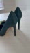 Isn’t she so pretty??!! These are very hard to find! A beautiful shade of green satin, with a rounded toe, and a lovely lime green bow with a gold and green beetle jewel❤️