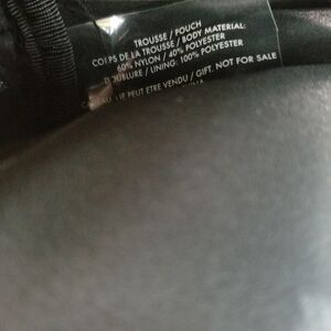 Black velvet makeup bag from D&G Beauty with gold embossed branding and hardware. Interior shows no signs of prior use. Measures approximately 8" x 6" x 1.5"