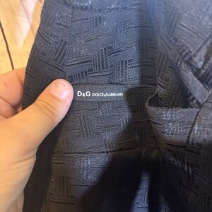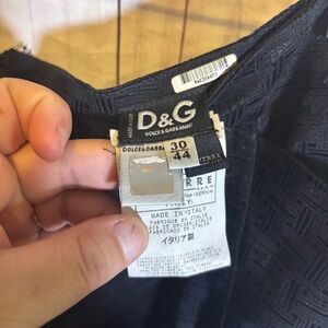 This Dolce & Gabbana mini skirt features a chic wrap design with a tie front, perfect for casual or work settings. Crafted in a sleek black fabric, it offers a fitted silhouette that adds a touch of elegance to any outfit. The subtle texture and slight sheen of the material enhance its sophisticated appeal.