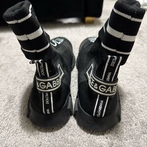 Stylish high-top sneakers with bold branding. Comfortable and trendy design.