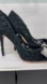 Chic black lace heels with a dazzling bow accent. Perfect for elegant occasions.