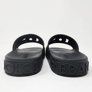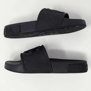 Dolce & Gabbana Black Logo-Embossed Rubber Pool Slides w/ Cushion Sole. EU35/US5