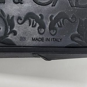 Elevate your summer footwear game with these stylish Dolce & Gabbana pool slides. Crafted in Italy with high-quality rubber, these black slides feature the brand's iconic logo embossed on the upper material. The slip-on closure and cushioned sole make them perfect for both travel and casual occasions. These flat slides come in a standard shoe width with low (1-1.9 in) heel height, making them comfortable for all-day wear. The outsole is made of rubber, and the insole is cushioned for added support. These pool slides are perfect for summer, fall, and spring seasons, and they are sure to be a staple in any fashion-forward woman's footwear collection.