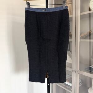 Dolce Gabbana Black Tweed Wool Denim Blue Trim Waist Pencil Skirt 38 D&G Y2K