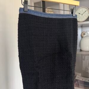D&G Dolce Gabbana Black Tweed Wool Denim Blue Trim Waist Pencil Skirt