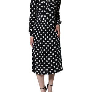 Dolce & Gabbana Black White Polka Dot Ascot Collar Midi Dress IT40 S