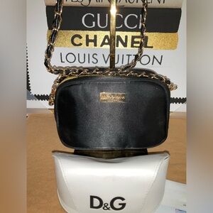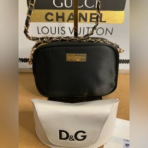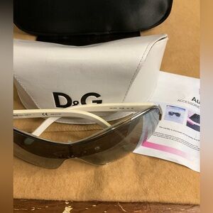 Stylish Dolce & Gabbana sunglasses. Sleek black and white design. Perfect for any occasion.