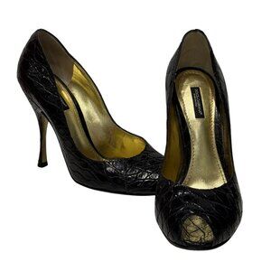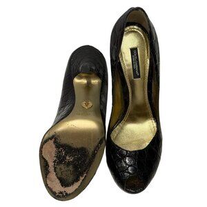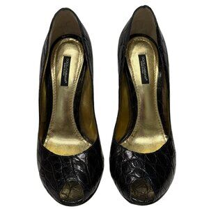 Dolce & Gabbana Black embossed peep heels 8.5/38.5