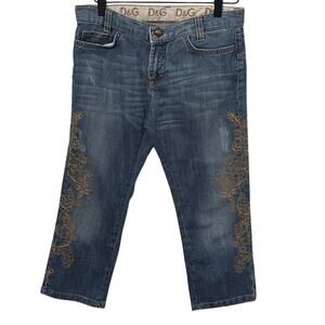 Dolce & Gabbana Blue Jeans with Gold Embroidery Size 27 VTG Y2K