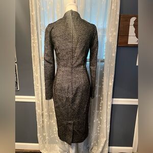Chic charcoal dress with long sleeves. Tailored fit. Ideal for elegant occasions.
